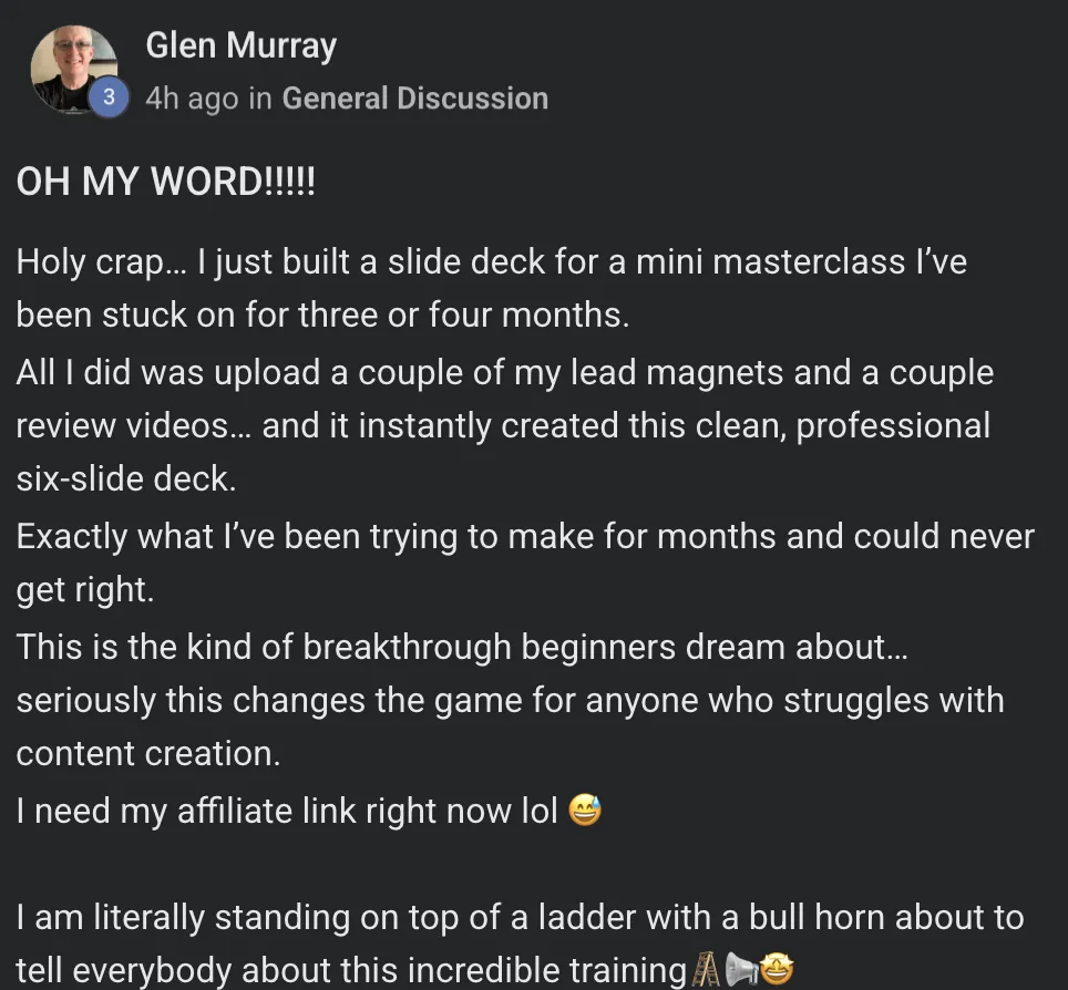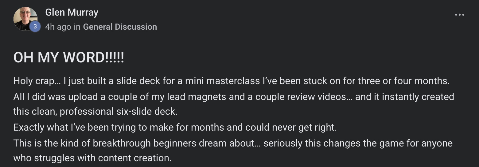 "this is absolutely crazy. I see so many different avenues to be able to not only build businesses, but also to be able to help and scale my current companies. this is crazy."